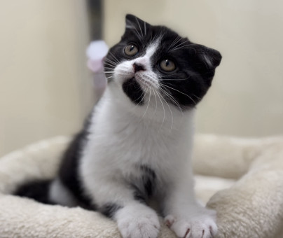 当舎生まれのカッコイイ白黒カラーで折れ耳のスコティッシュくんです‼️