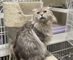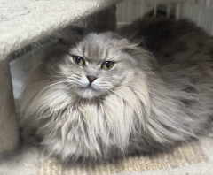 長毛なので多少のお手入れが必要です。人間大好きなので猫ちゃんと触れ合いたい方に向いています。避妊手術は行なっていません。